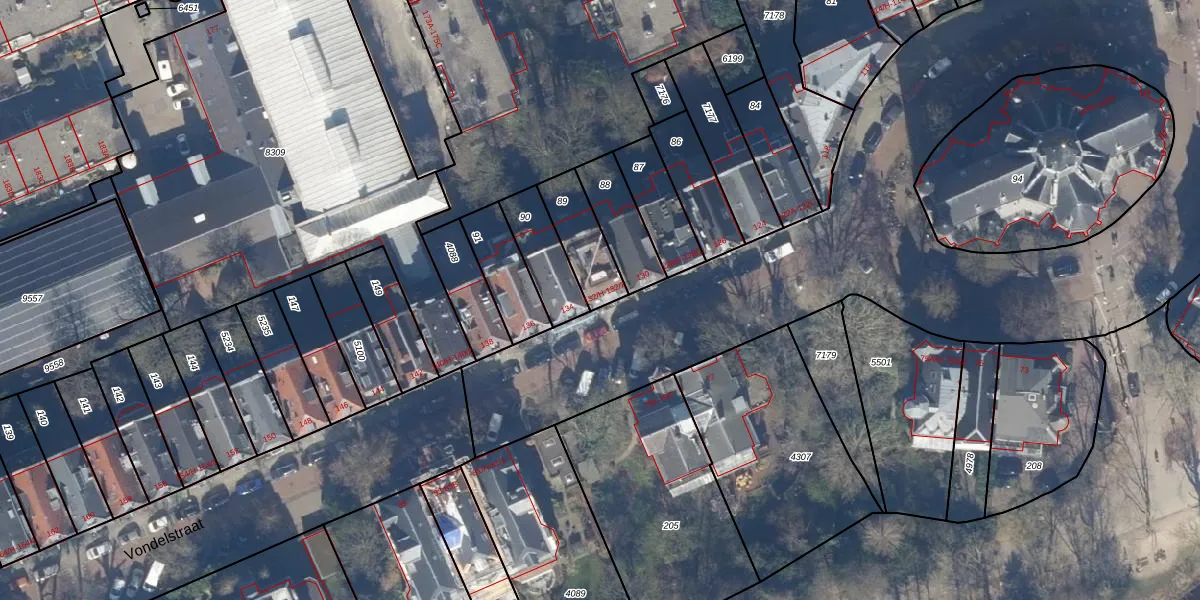 Het perceel waarop Vondelstraat 132-H staat heeft een oppervlakte van 161 m². Dit is een middelgroot perceel. De perceeloppervlakte wordt geregistreerd door het Kadaster. Gedetailleerde informatie over de maten van dit perceel kunt u vinden in het rapport Kadastrale kaart met maatvoering van Vondelstraat 132-H.