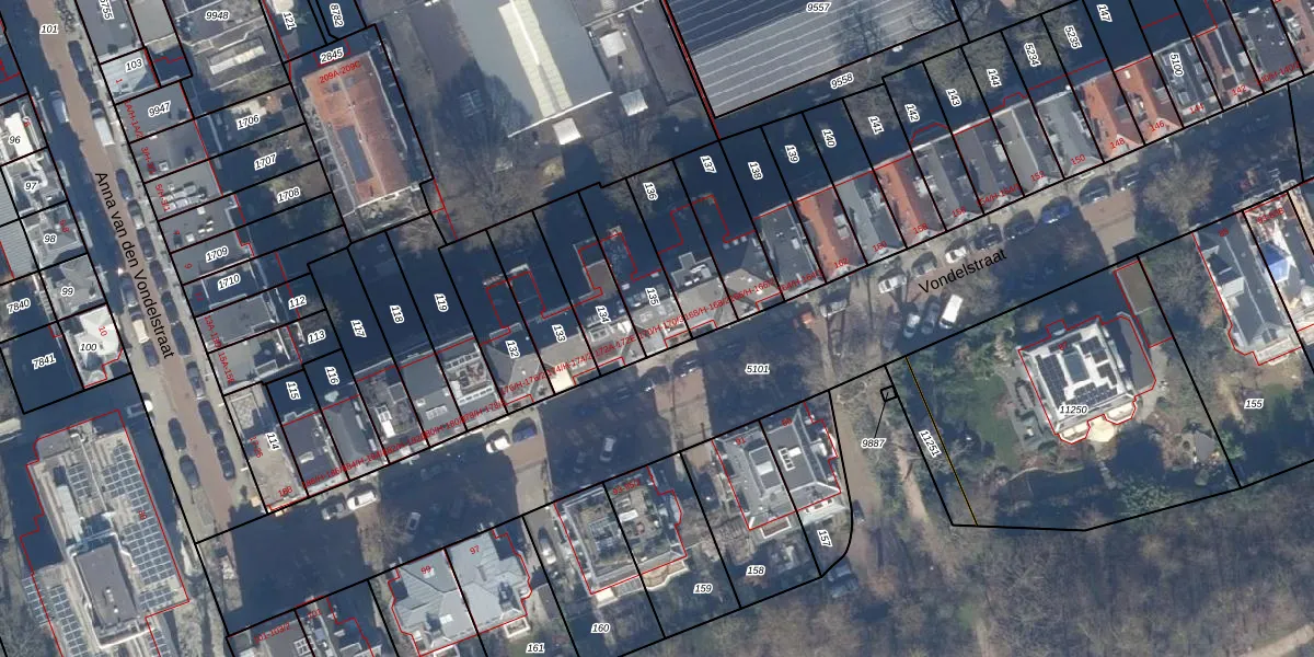 Het perceel waarop Vondelstraat 170-2 staat heeft een oppervlakte van 207 m². Dit is een middelgroot perceel. De perceeloppervlakte wordt geregistreerd door het Kadaster. Gedetailleerde informatie over de maten van dit perceel kunt u vinden in het rapport Kadastrale kaart met maatvoering van Vondelstraat 170-2.