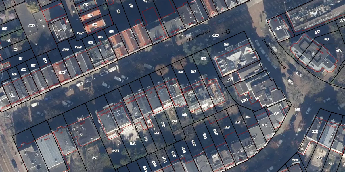 Het perceel waarop Vondelstraat 21-A staat heeft een oppervlakte van 262 m². Dit is een middelgroot perceel. De perceeloppervlakte wordt geregistreerd door het Kadaster. Gedetailleerde informatie over de maten van dit perceel kunt u vinden in het rapport Kadastrale kaart met maatvoering van Vondelstraat 21-A.