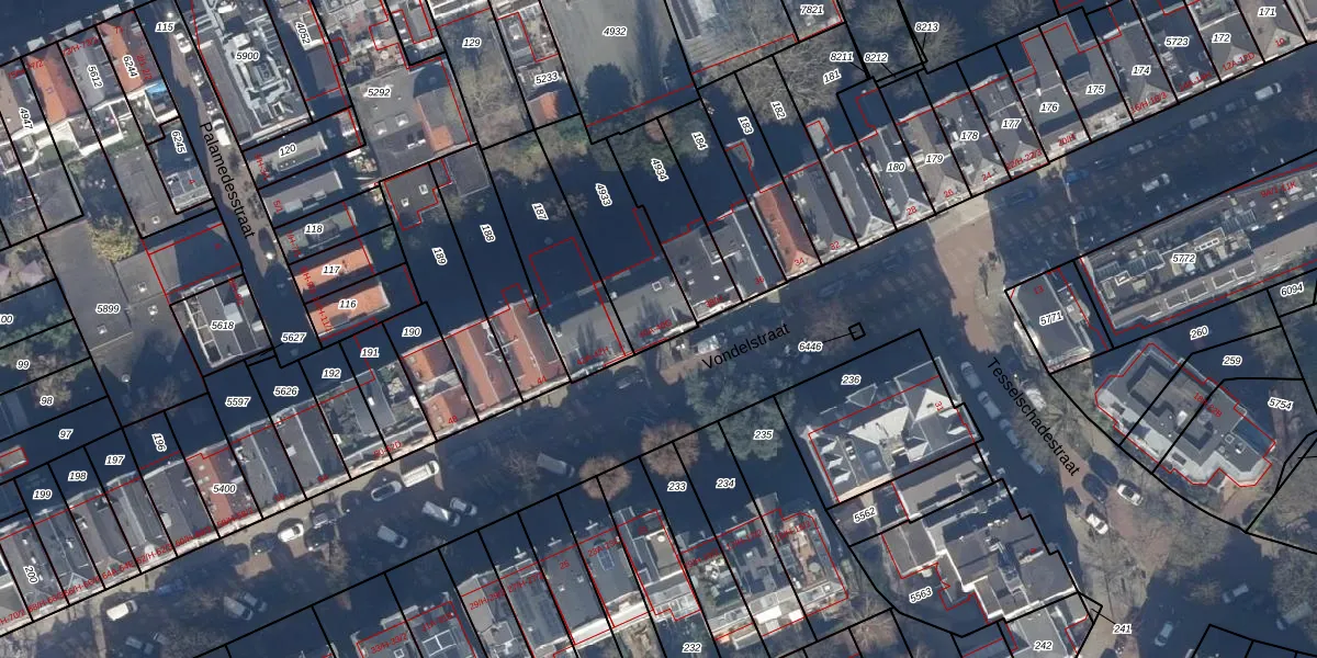 Het perceel waarop Vondelstraat 40-B staat heeft een oppervlakte van 356 m². Dit is een groot perceel. De perceeloppervlakte wordt geregistreerd door het Kadaster. Gedetailleerde informatie over de maten van dit perceel kunt u vinden in het rapport Kadastrale kaart met maatvoering van Vondelstraat 40-B.
