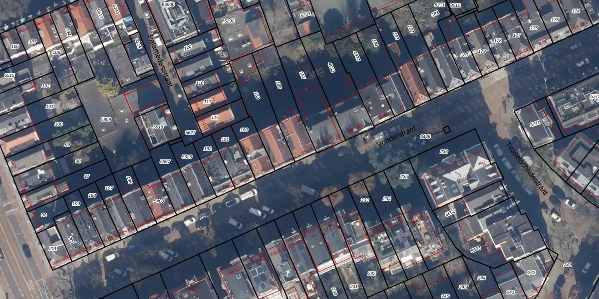Het perceel waarop Vondelstraat 44 staat heeft een oppervlakte van 304 m². Dit is een groot perceel. De perceeloppervlakte wordt geregistreerd door het Kadaster. Gedetailleerde informatie over de maten van dit perceel kunt u vinden in het rapport Kadastrale kaart met maatvoering van Vondelstraat 44.