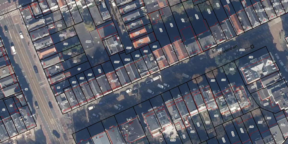 Het perceel waarop Vondelstraat 52-C staat heeft een oppervlakte van 142 m². Dit is een middelgroot perceel. De perceeloppervlakte wordt geregistreerd door het Kadaster. Gedetailleerde informatie over de maten van dit perceel kunt u vinden in het rapport Kadastrale kaart met maatvoering van Vondelstraat 52-C.