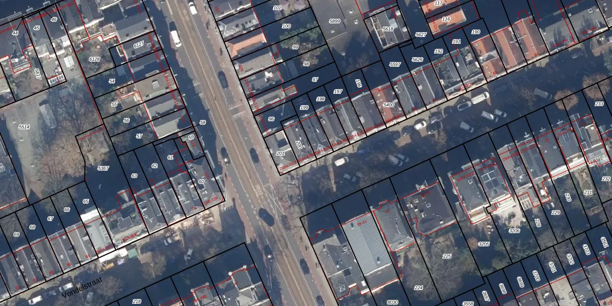 Het perceel waarop Vondelstraat 68-1 staat heeft een oppervlakte van 96 m². Dit is een klein perceel. De perceeloppervlakte wordt geregistreerd door het Kadaster. Gedetailleerde informatie over de maten van dit perceel kunt u vinden in het rapport Kadastrale kaart met maatvoering van Vondelstraat 68-1.