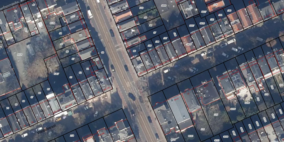 Het perceel waarop Vondelstraat 70-1 staat heeft een oppervlakte van 94 m². Dit is een klein perceel. De perceeloppervlakte wordt geregistreerd door het Kadaster. Gedetailleerde informatie over de maten van dit perceel kunt u vinden in het rapport Kadastrale kaart met maatvoering van Vondelstraat 70-1.