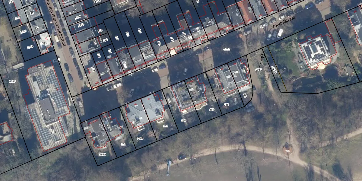 Het perceel waarop Vondelstraat 95-O staat heeft een oppervlakte van 322 m². Dit is een groot perceel. De perceeloppervlakte wordt geregistreerd door het Kadaster. Gedetailleerde informatie over de maten van dit perceel kunt u vinden in het rapport Kadastrale kaart met maatvoering van Vondelstraat 95-O.