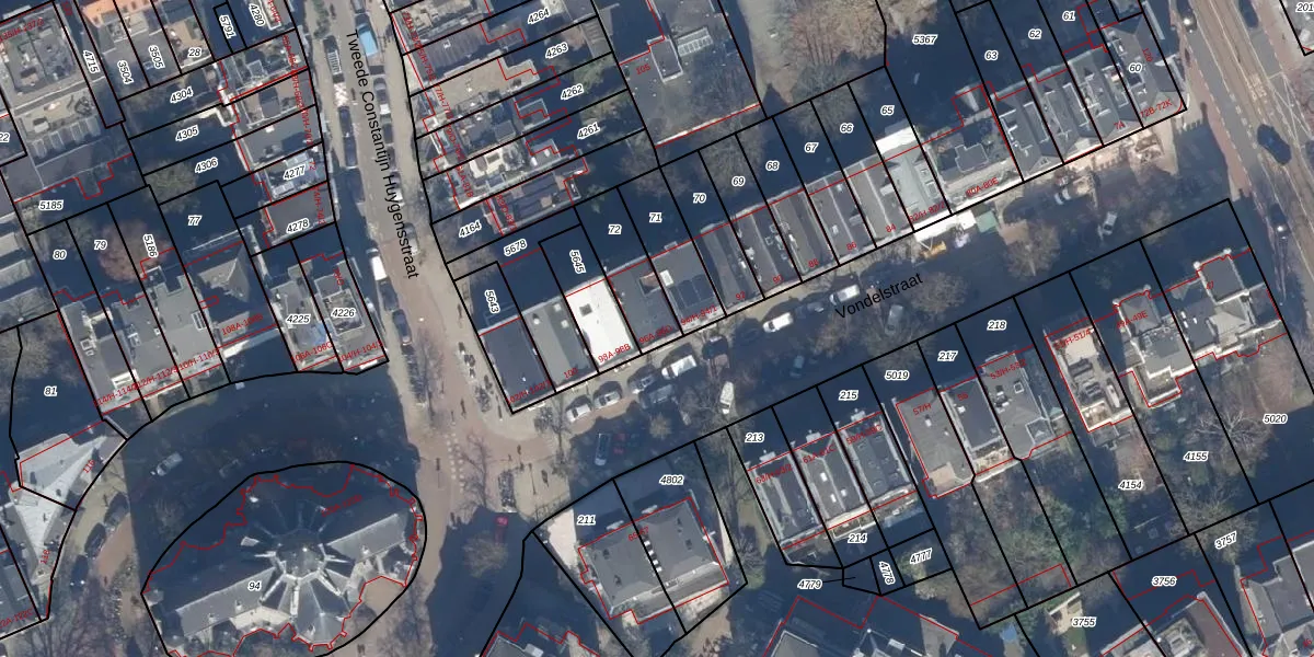 Het perceel waarop Vondelstraat 96-B staat heeft een oppervlakte van 175 m². Dit is een middelgroot perceel. De perceeloppervlakte wordt geregistreerd door het Kadaster. Gedetailleerde informatie over de maten van dit perceel kunt u vinden in het rapport Kadastrale kaart met maatvoering van Vondelstraat 96-B.