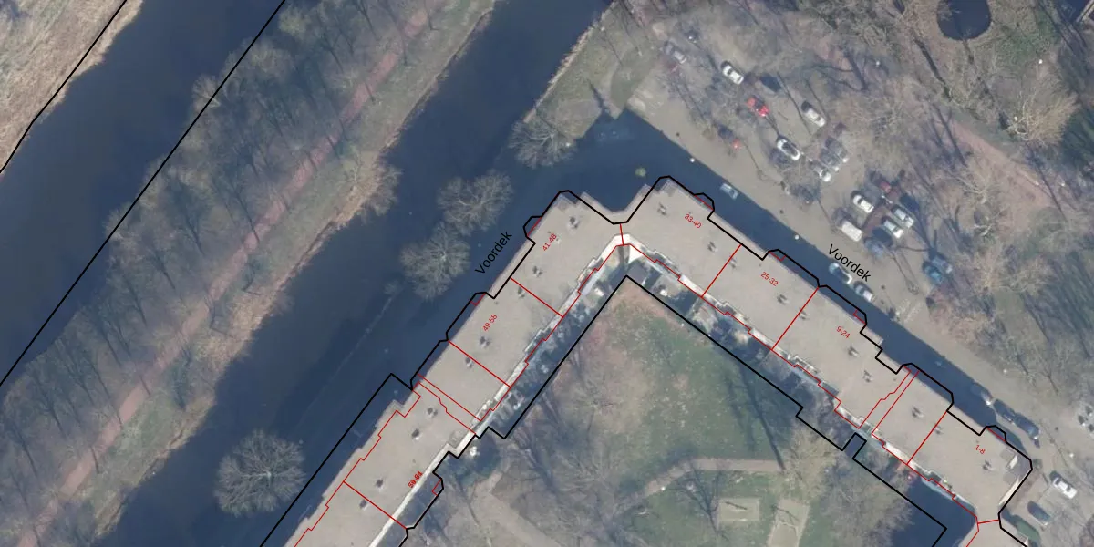 Voordek 47 is gelegen op kadastraal perceel ASD36AQ2208. Deze kadastrale aanduiding is uniek en wordt gebruikt door het Kadaster om eigendomsrechten en andere zakelijke rechten vast te leggen. Het perceel maakt onderdeel uit van de kadastrale gemeente Amsterdam.