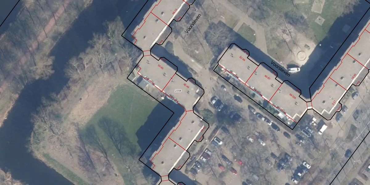 Het perceel waarop Voorsteven 43 staat heeft een oppervlakte van 8000 m². Dit is een zeer groot perceel. De perceeloppervlakte wordt geregistreerd door het Kadaster. Gedetailleerde informatie over de maten van dit perceel kunt u vinden in het rapport Kadastrale kaart met maatvoering van Voorsteven 43.