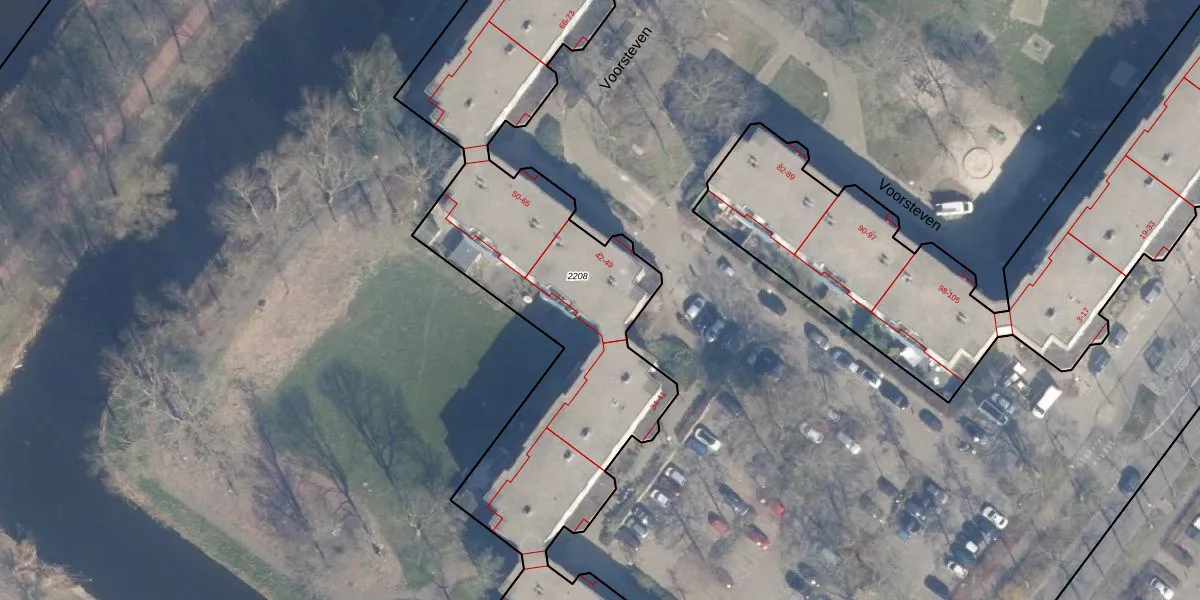 Voorsteven 44 is gelegen op kadastraal perceel ASD36AQ2208. Deze kadastrale aanduiding is uniek en wordt gebruikt door het Kadaster om eigendomsrechten en andere zakelijke rechten vast te leggen. Het perceel maakt onderdeel uit van de kadastrale gemeente Amsterdam.