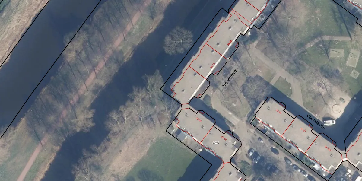 Het perceel waarop Voorsteven 65 staat heeft een oppervlakte van 8000 m². Dit is een zeer groot perceel. De perceeloppervlakte wordt geregistreerd door het Kadaster. Gedetailleerde informatie over de maten van dit perceel kunt u vinden in het rapport Kadastrale kaart met maatvoering van Voorsteven 65.