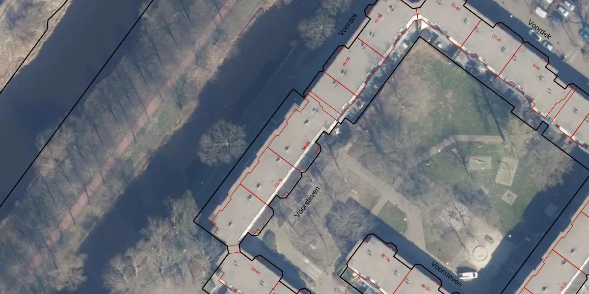 Voorsteven 75 is gelegen op kadastraal perceel ASD36AQ2208. Deze kadastrale aanduiding is uniek en wordt gebruikt door het Kadaster om eigendomsrechten en andere zakelijke rechten vast te leggen. Het perceel maakt onderdeel uit van de kadastrale gemeente Amsterdam.