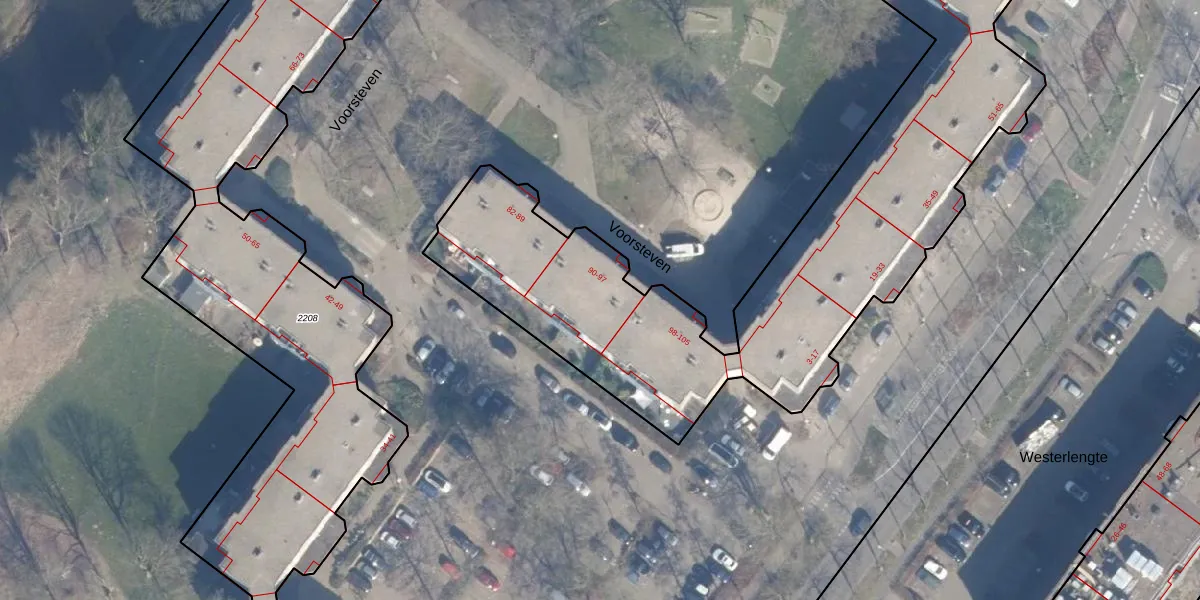 Voorsteven 95 is gelegen op kadastraal perceel ASD36AQ2208. Deze kadastrale aanduiding is uniek en wordt gebruikt door het Kadaster om eigendomsrechten en andere zakelijke rechten vast te leggen. Het perceel maakt onderdeel uit van de kadastrale gemeente Amsterdam.