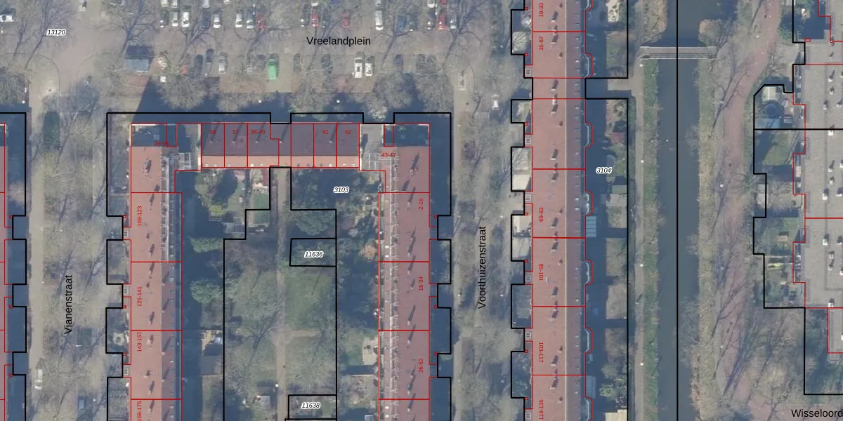 Het adres ligt op het perceel WPK02-L-3103, dat zich in de kadastrale gemeente Weesperkarspel bevindt. Het perceel is met 6682 m² relatief groot. Het gemiddelde ligt in de kadastrale gemeente Weesperkarspel op 1745,08 m². De grootste perceeloppervlakte in de kadastrale gemeente is 1,04 km². De kleinste oppervlakte bedraagt 0 m². Op het perceel zijn 112 adressen aanwezig. In de Basisregistratie Kadaster (BRK) werden de grenzen van het perceel geregistreerd op 02-11-2020.