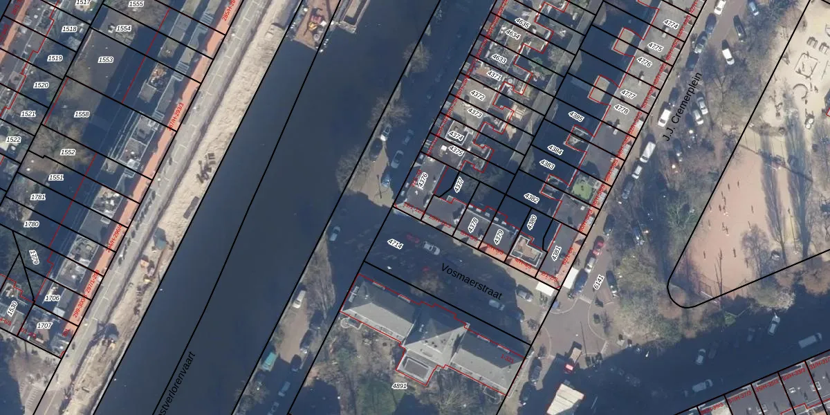Het perceel waarop het adres ligt is ASD16-T-4376. De afkorting 'ASD16' staat voor kadastrale gemeente Amsterdam. Het perceel is kleiner dan gemiddeld in Amsterdam. Het perceel is 124 m² groot, terwijl het gemiddelde ligt op 245,33 m². Het grootste perceel in de kadastrale gemeente is 3,3 ha. Het kleinste perceel heeft een oppervlakte van 0 m². Op het perceel zijn 7 adressen aanwezig. De huidige grenzen van het perceel zijn digitaal in de Basisregistratie Kadaster (BRK) geregistreerd op 10-01-2007.