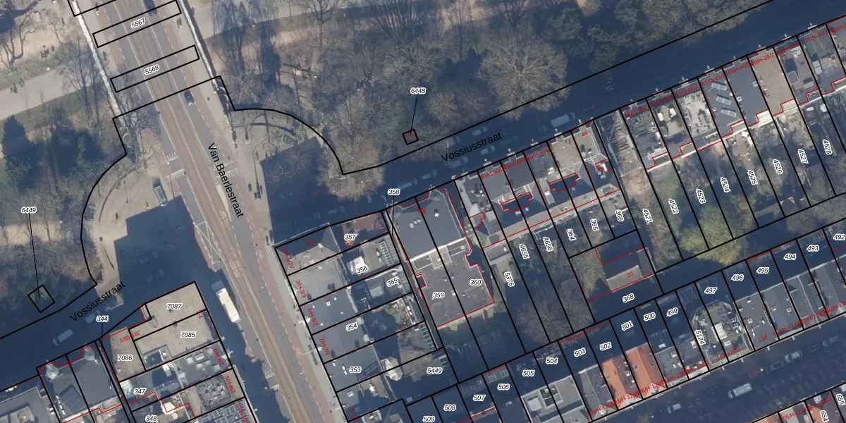 Het perceel waarop Vossiusstraat 53 staat heeft een oppervlakte van 445 m². Dit is een groot perceel. De perceeloppervlakte wordt geregistreerd door het Kadaster. Gedetailleerde informatie over de maten van dit perceel kunt u vinden in het rapport Kadastrale kaart met maatvoering van Vossiusstraat 53.