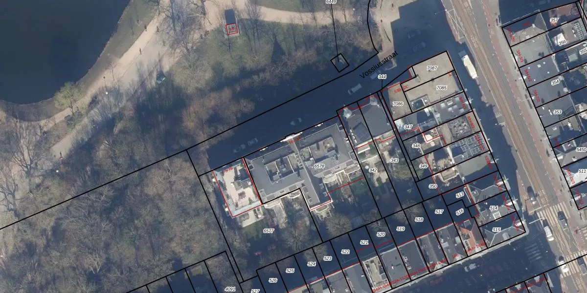 Het perceel waarop Vossiusstraat 63 staat heeft een oppervlakte van 1080 m². Dit is een zeer groot perceel. De perceeloppervlakte wordt geregistreerd door het Kadaster. Gedetailleerde informatie over de maten van dit perceel kunt u vinden in het rapport Kadastrale kaart met maatvoering van Vossiusstraat 63.