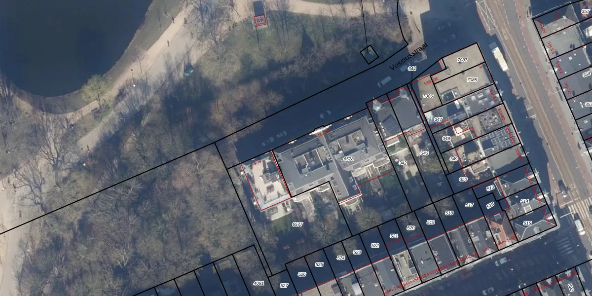 Het perceel waarop Vossiusstraat 74-A staat heeft een oppervlakte van 1080 m². Dit is een zeer groot perceel. De perceeloppervlakte wordt geregistreerd door het Kadaster. Gedetailleerde informatie over de maten van dit perceel kunt u vinden in het rapport Kadastrale kaart met maatvoering van Vossiusstraat 74-A.
