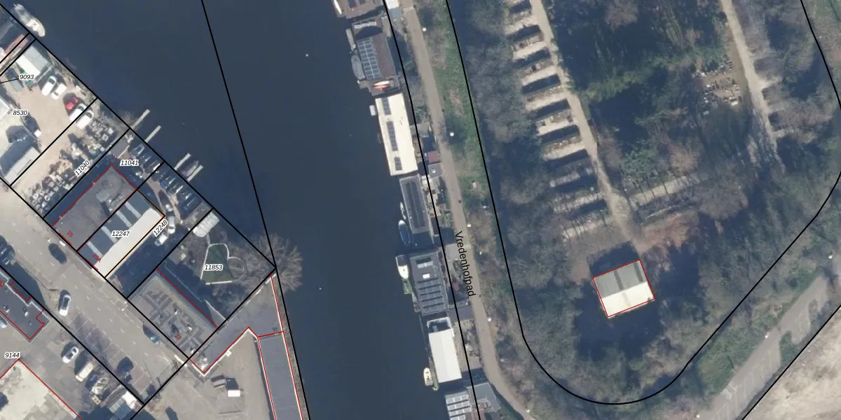 Het perceel waarop Vredenhofpad 15 staat heeft een oppervlakte van 2,1 ha. Dit is een zeer groot perceel. De perceeloppervlakte wordt geregistreerd door het Kadaster. Gedetailleerde informatie over de maten van dit perceel kunt u vinden in het rapport Kadastrale kaart met maatvoering van Vredenhofpad 15.