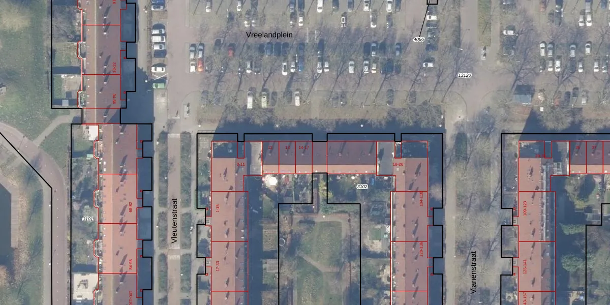 Vreelandplein 14 is gelegen op kadastraal perceel WPK02L3102. Deze kadastrale aanduiding is uniek en wordt gebruikt door het Kadaster om eigendomsrechten en andere zakelijke rechten vast te leggen. Het perceel maakt onderdeel uit van de kadastrale gemeente Weesperkarspel.