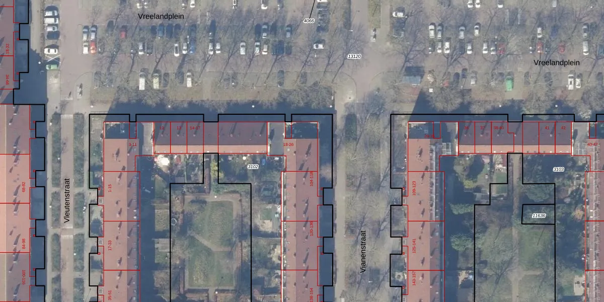 Vreelandplein 23 is gelegen op kadastraal perceel WPK02L3102. Deze kadastrale aanduiding is uniek en wordt gebruikt door het Kadaster om eigendomsrechten en andere zakelijke rechten vast te leggen. Het perceel maakt onderdeel uit van de kadastrale gemeente Weesperkarspel.