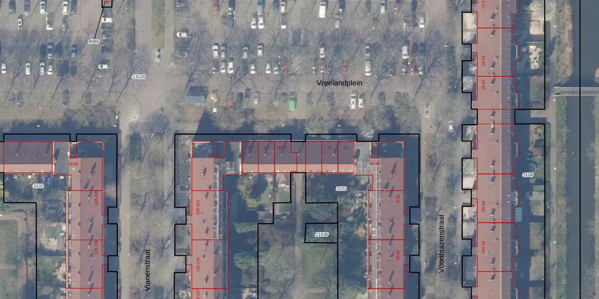 Vreelandplein 39 is gelegen op kadastraal perceel WPK02L3103. Deze kadastrale aanduiding is uniek en wordt gebruikt door het Kadaster om eigendomsrechten en andere zakelijke rechten vast te leggen. Het perceel maakt onderdeel uit van de kadastrale gemeente Weesperkarspel.