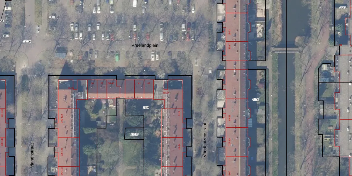 Vreelandplein 43 is gelegen op kadastraal perceel WPK02L3103. Deze kadastrale aanduiding is uniek en wordt gebruikt door het Kadaster om eigendomsrechten en andere zakelijke rechten vast te leggen. Het perceel maakt onderdeel uit van de kadastrale gemeente Weesperkarspel.