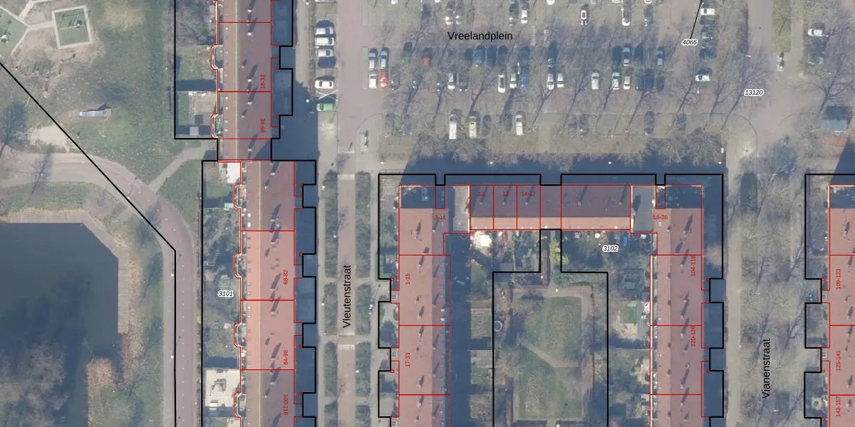Vreelandplein 9 is gelegen op kadastraal perceel WPK02L3102. Deze kadastrale aanduiding is uniek en wordt gebruikt door het Kadaster om eigendomsrechten en andere zakelijke rechten vast te leggen. Het perceel maakt onderdeel uit van de kadastrale gemeente Weesperkarspel.