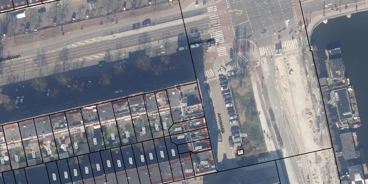 Vrijheidslaan 1-4 is gelegen op kadastraal perceel ASD18V4774. Deze kadastrale aanduiding is uniek en wordt gebruikt door het Kadaster om eigendomsrechten en andere zakelijke rechten vast te leggen. Het perceel maakt onderdeel uit van de kadastrale gemeente Amsterdam.