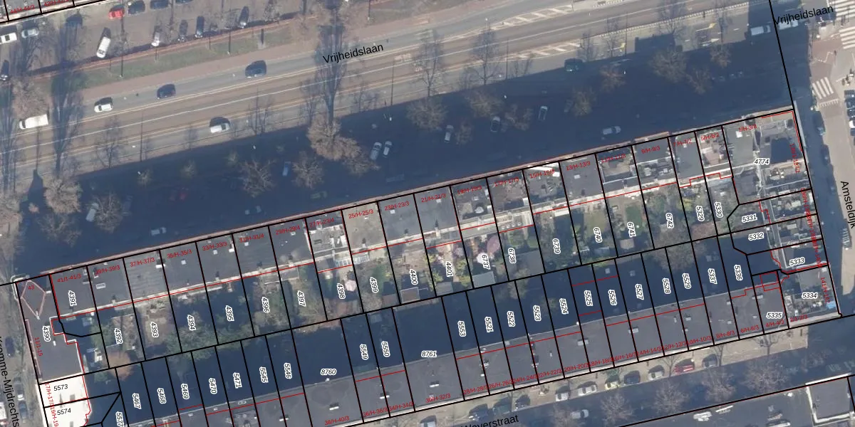 Vrijheidslaan 21-H is gelegen op kadastraal perceel ASD18V4401. Deze kadastrale aanduiding is uniek en wordt gebruikt door het Kadaster om eigendomsrechten en andere zakelijke rechten vast te leggen. Het perceel maakt onderdeel uit van de kadastrale gemeente Amsterdam.