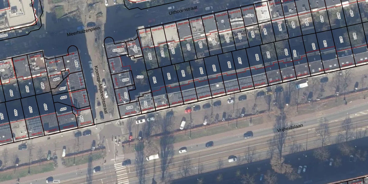 Het perceel waarop Vrijheidslaan 38-H staat heeft een oppervlakte van 177 m². Dit is een middelgroot perceel. De perceeloppervlakte wordt geregistreerd door het Kadaster. Gedetailleerde informatie over de maten van dit perceel kunt u vinden in het rapport Kadastrale kaart met maatvoering van Vrijheidslaan 38-H.