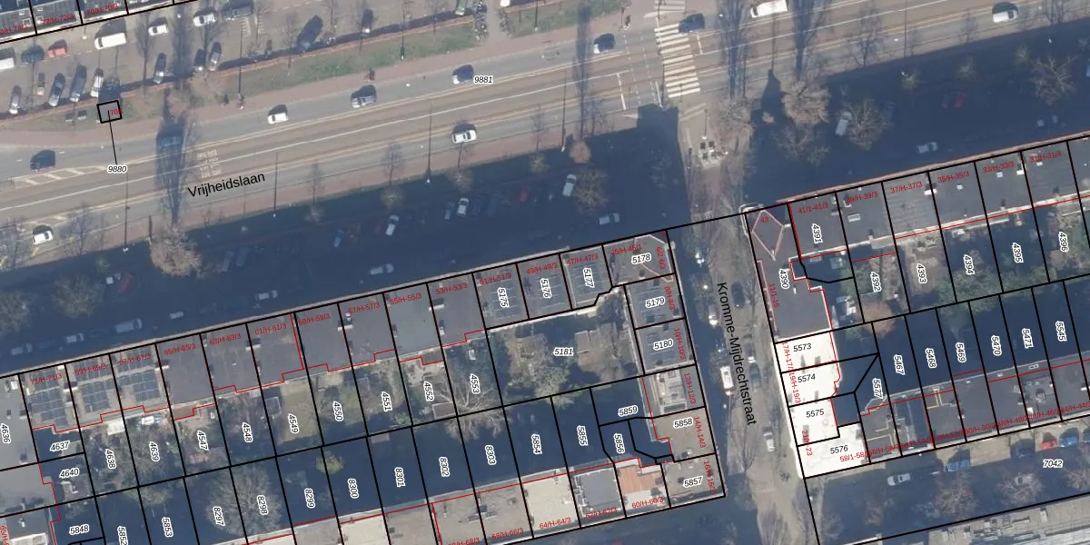 Het perceel waarop Vrijheidslaan 49-H staat heeft een oppervlakte van 83 m². Dit is een klein perceel. De perceeloppervlakte wordt geregistreerd door het Kadaster. Gedetailleerde informatie over de maten van dit perceel kunt u vinden in het rapport Kadastrale kaart met maatvoering van Vrijheidslaan 49-H.