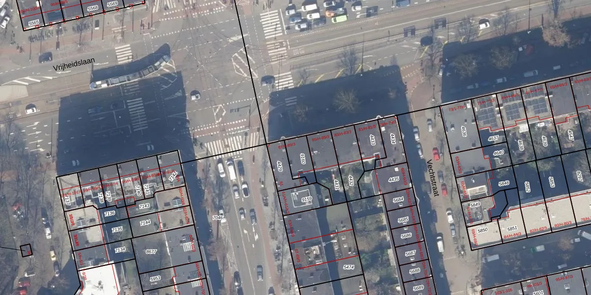 Het perceel waarop Vrijheidslaan 87-H staat heeft een oppervlakte van 121 m². Dit is een middelgroot perceel. De perceeloppervlakte wordt geregistreerd door het Kadaster. Gedetailleerde informatie over de maten van dit perceel kunt u vinden in het rapport Kadastrale kaart met maatvoering van Vrijheidslaan 87-H.