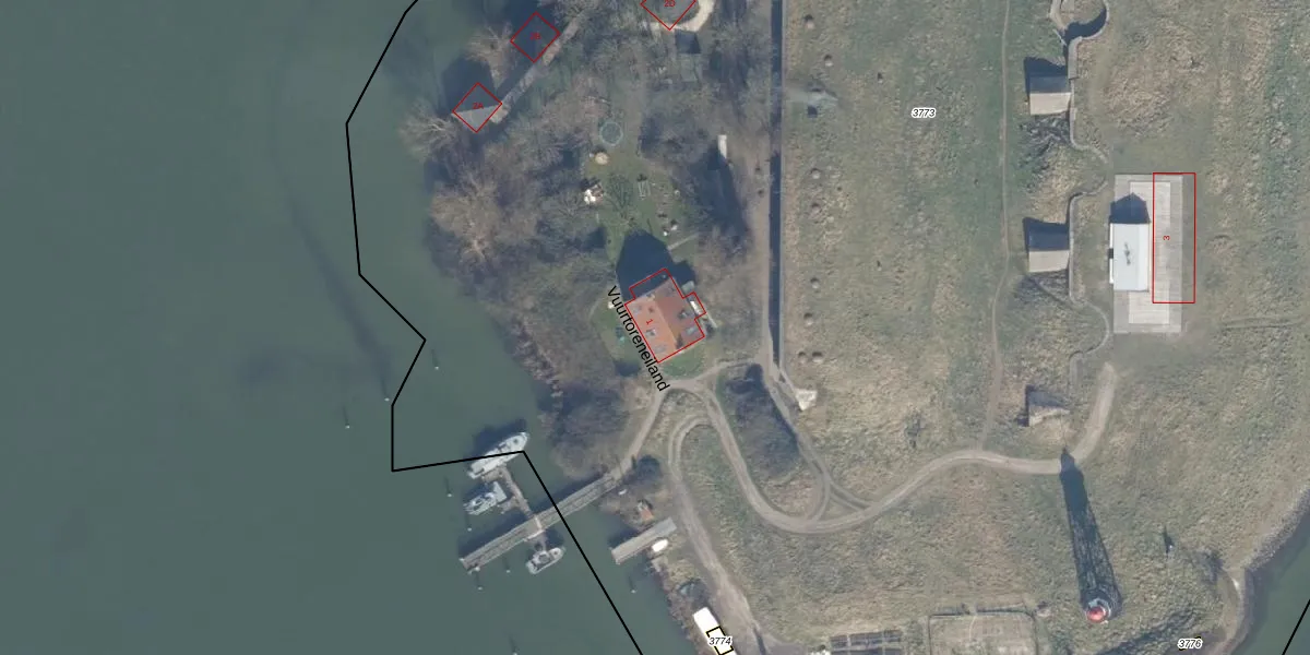 Het perceel waarop Vuurtoreneiland 1 staat heeft een oppervlakte van 2,6 ha. Dit is een zeer groot perceel. De perceeloppervlakte wordt geregistreerd door het Kadaster. Gedetailleerde informatie over de maten van dit perceel kunt u vinden in het rapport Kadastrale kaart met maatvoering van Vuurtoreneiland 1.
