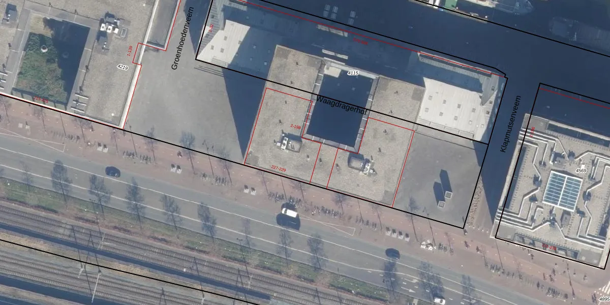 Het perceel waarop Waagdragerhof 82 staat heeft een oppervlakte van 1,0 ha. Dit is een zeer groot perceel. De perceeloppervlakte wordt geregistreerd door het Kadaster. Gedetailleerde informatie over de maten van dit perceel kunt u vinden in het rapport Kadastrale kaart met maatvoering van Waagdragerhof 82.