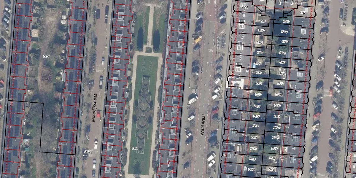Het perceel waarop Waalstraat 150-H staat heeft een oppervlakte van 6920 m². Dit is een zeer groot perceel. De perceeloppervlakte wordt geregistreerd door het Kadaster. Gedetailleerde informatie over de maten van dit perceel kunt u vinden in het rapport Kadastrale kaart met maatvoering van Waalstraat 150-H.