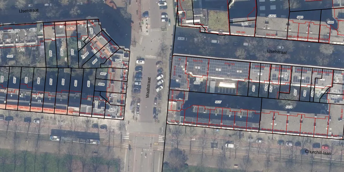 Het perceel waarop Waalstraat 17-H staat heeft een oppervlakte van 906 m². Dit is een groot perceel. De perceeloppervlakte wordt geregistreerd door het Kadaster. Gedetailleerde informatie over de maten van dit perceel kunt u vinden in het rapport Kadastrale kaart met maatvoering van Waalstraat 17-H.