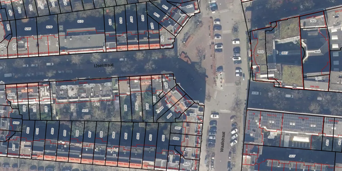 Het perceel waarop Waalstraat 20 staat heeft een oppervlakte van 81 m². Dit is een klein perceel. De perceeloppervlakte wordt geregistreerd door het Kadaster. Gedetailleerde informatie over de maten van dit perceel kunt u vinden in het rapport Kadastrale kaart met maatvoering van Waalstraat 20.