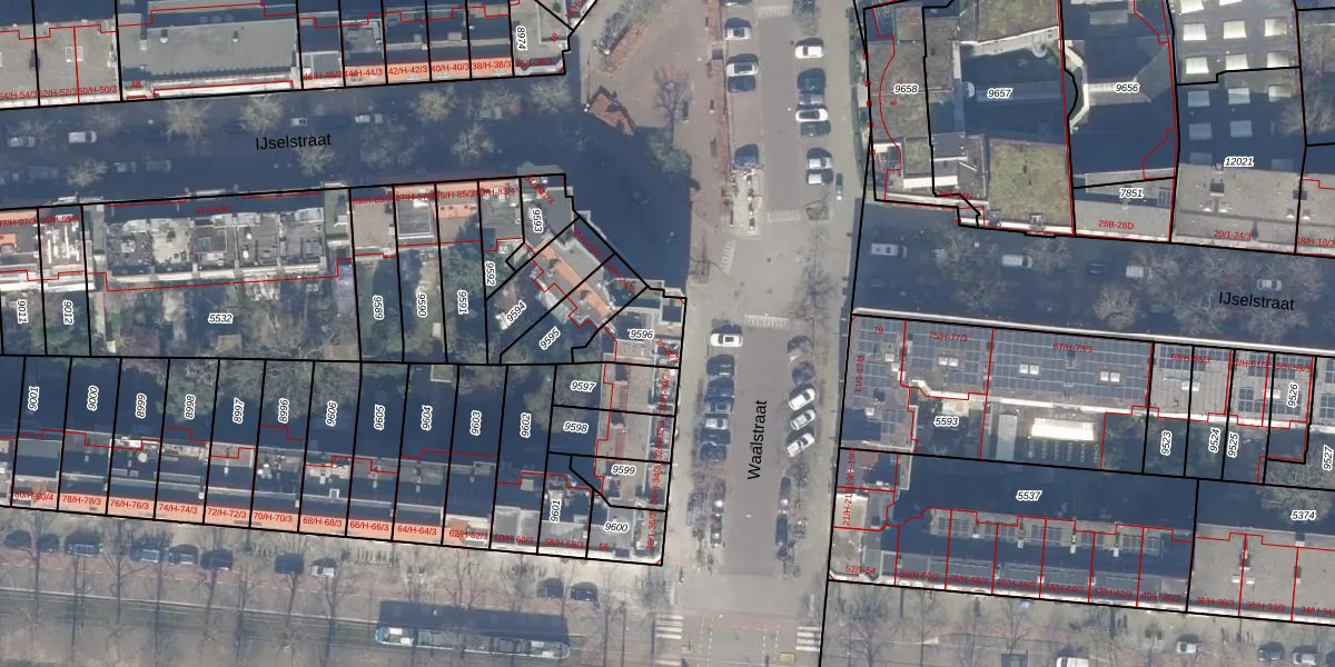 Het perceel waarop het adres ligt is ASD18-V-9596. De afkorting 'ASD18' staat voor kadastrale gemeente Amsterdam. Het perceel is kleiner dan gemiddeld in Amsterdam. Het perceel is 132 m² groot, terwijl het gemiddelde ligt op 558,8 m². Het kleinste perceel in de kadastrale gemeente is 0 m² groot. De grootste perceeloppervlakte is 12,5 ha. Op het perceel zijn 8 adressen aanwezig. In de Basisregistratie Kadaster (BRK) werden de grenzen van het perceel geregistreerd op 20-11-2006.