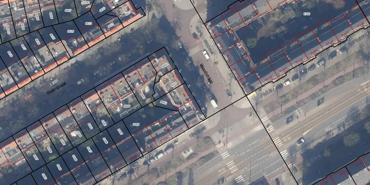 Waalstraat 56 is gelegen op kadastraal perceel ASD18V8452. Deze kadastrale aanduiding is uniek en wordt gebruikt door het Kadaster om eigendomsrechten en andere zakelijke rechten vast te leggen. Het perceel maakt onderdeel uit van de kadastrale gemeente Amsterdam.