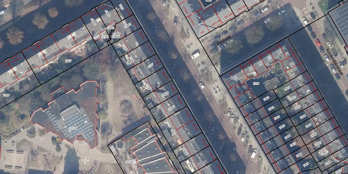 Het perceel waarop het adres ligt is ASD18-V-10439. De afkorting 'ASD18' staat voor kadastrale gemeente Amsterdam. Het perceel is 173 m² groot. Dat is kleiner dan de gemiddelde perceeloppervlakte in Amsterdam, dat op 558,8 m² ligt. Het kleinste perceel in de kadastrale gemeente is 0 m² groot. De grootste perceeloppervlakte is 12,5 ha. Op het perceel zijn 4 adressen aanwezig. De laatste wijziging in het de Basisregistratie Kadaster (BRK) was op 08-12-2006.