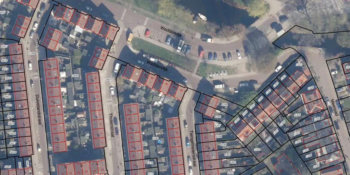 Het perceel waarop Waddendijk 83 staat heeft een oppervlakte van 2187 m². Dit is een zeer groot perceel. De perceeloppervlakte wordt geregistreerd door het Kadaster. Gedetailleerde informatie over de maten van dit perceel kunt u vinden in het rapport Kadastrale kaart met maatvoering van Waddendijk 83.