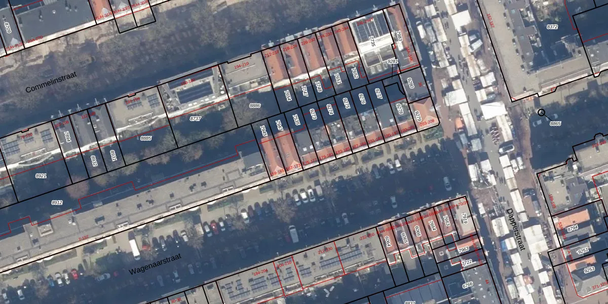 Het adres ligt op het perceel ASD15-S-7535, dat zich in de kadastrale gemeente Amsterdam bevindt. De gemiddelde perceelgrootte in Amsterdam is 537,06 m². Dit perceel is kleiner: de perceeloppervlakte bedraagt 120 m². Het kleinste perceel in de kadastrale gemeente is 0 m² groot. De grootste perceeloppervlakte is 14,5 ha. Op het perceel zijn 2 adressen aanwezig. De huidige grenzen van het perceel zijn digitaal in de Basisregistratie Kadaster (BRK) geregistreerd op 09-11-2006.