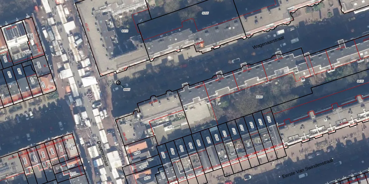 Wagenaarstraat 356 is gelegen op kadastraal perceel ASD15S8360. Deze kadastrale aanduiding is uniek en wordt gebruikt door het Kadaster om eigendomsrechten en andere zakelijke rechten vast te leggen. Het perceel maakt onderdeel uit van de kadastrale gemeente Amsterdam.