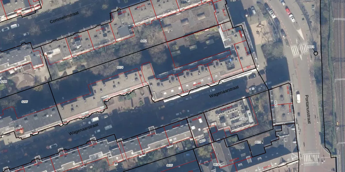 Wagenaarstraat 457 is gelegen op kadastraal perceel ASD15S8374. Deze kadastrale aanduiding is uniek en wordt gebruikt door het Kadaster om eigendomsrechten en andere zakelijke rechten vast te leggen. Het perceel maakt onderdeel uit van de kadastrale gemeente Amsterdam.