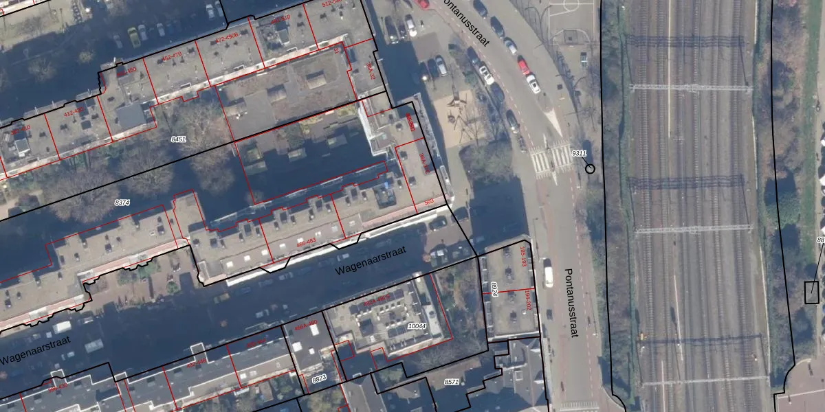 Wagenaarstraat 497 is gelegen op kadastraal perceel ASD15S8374. Deze kadastrale aanduiding is uniek en wordt gebruikt door het Kadaster om eigendomsrechten en andere zakelijke rechten vast te leggen. Het perceel maakt onderdeel uit van de kadastrale gemeente Amsterdam.