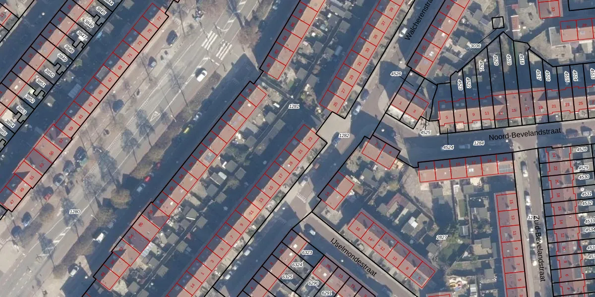 Het perceel waarop Walcherenstraat 21 staat heeft een oppervlakte van 6855 m². Dit is een zeer groot perceel. De perceeloppervlakte wordt geregistreerd door het Kadaster. Gedetailleerde informatie over de maten van dit perceel kunt u vinden in het rapport Kadastrale kaart met maatvoering van Walcherenstraat 21.