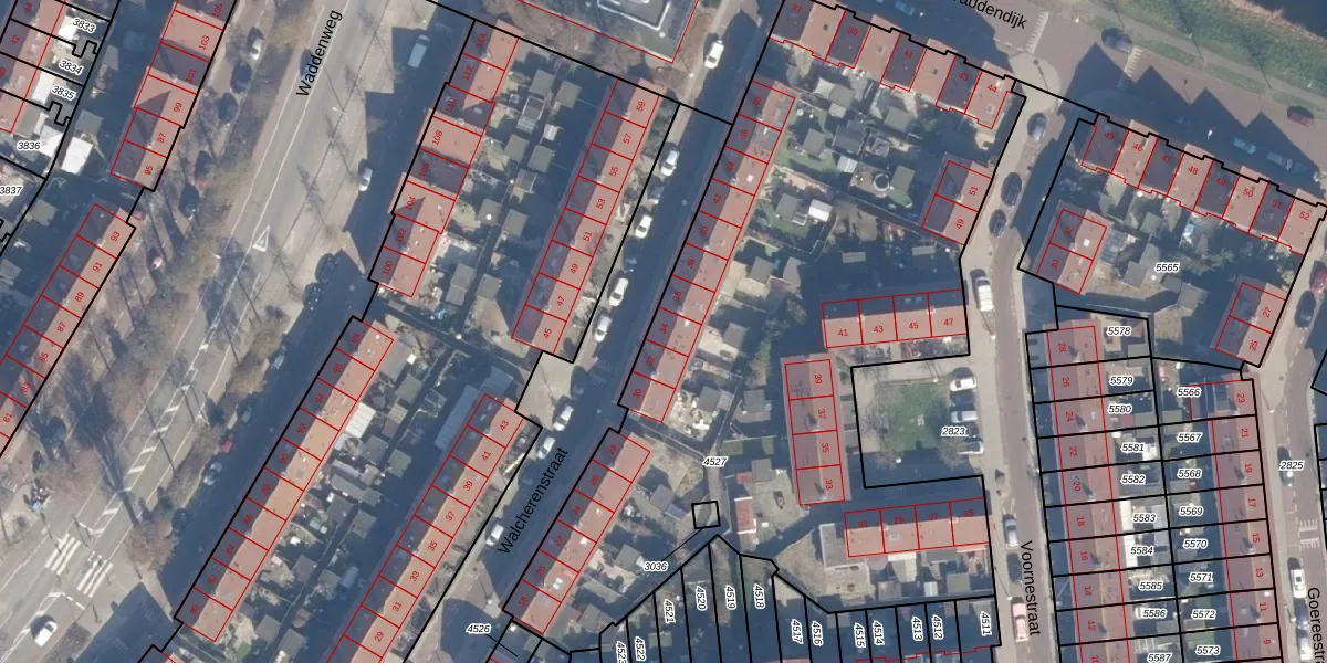 Het perceel waarop Walcherenstraat 34 staat heeft een oppervlakte van 3967 m². Dit is een zeer groot perceel. De perceeloppervlakte wordt geregistreerd door het Kadaster. Gedetailleerde informatie over de maten van dit perceel kunt u vinden in het rapport Kadastrale kaart met maatvoering van Walcherenstraat 34.
