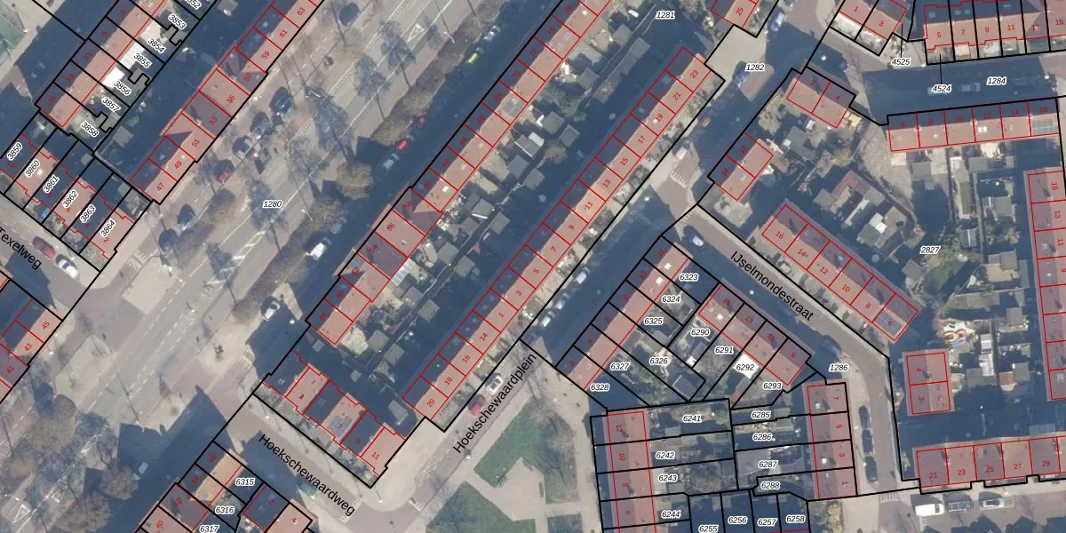 Het perceel waarop Walcherenstraat 5 staat heeft een oppervlakte van 6855 m². Dit is een zeer groot perceel. De perceeloppervlakte wordt geregistreerd door het Kadaster. Gedetailleerde informatie over de maten van dit perceel kunt u vinden in het rapport Kadastrale kaart met maatvoering van Walcherenstraat 5.