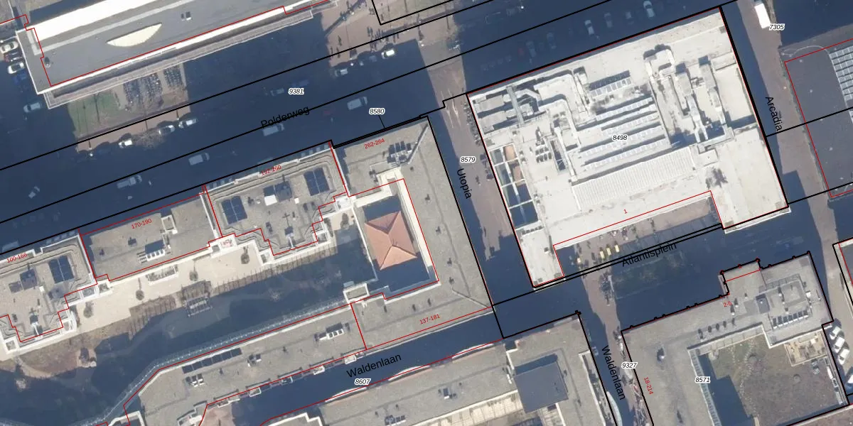 Het adres ligt op het perceel ASD19-W-8607, dat zich in de kadastrale gemeente Amsterdam bevindt. Het perceel is met 1,4 ha relatief groot. Het gemiddelde ligt in de kadastrale gemeente Amsterdam op 1563,05 m². De grootste perceeloppervlakte in de kadastrale gemeente is 17,9 ha. De kleinste oppervlakte bedraagt 0 m². Er zijn 312 adressen aanwezig op het perceel. De huidige grenzen van het perceel zijn digitaal in de Basisregistratie Kadaster (BRK) geregistreerd op 29-11-2010.