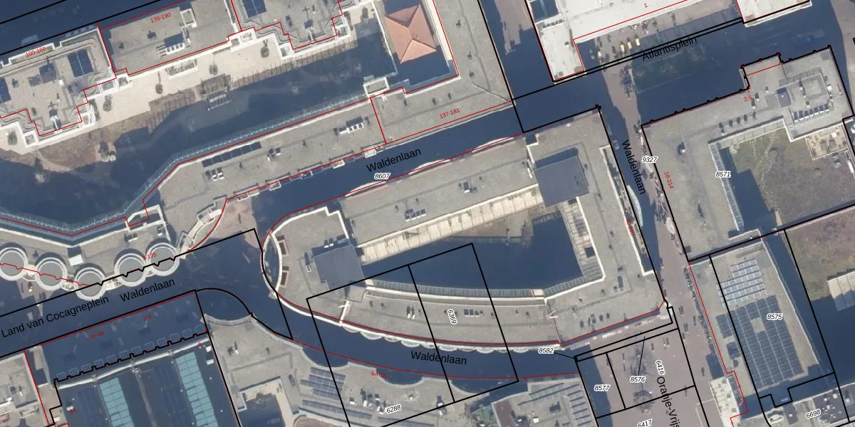 Waldenlaan 182 is gelegen op kadastraal perceel ASD19W8607. Deze kadastrale aanduiding is uniek en wordt gebruikt door het Kadaster om eigendomsrechten en andere zakelijke rechten vast te leggen. Het perceel maakt onderdeel uit van de kadastrale gemeente Amsterdam.